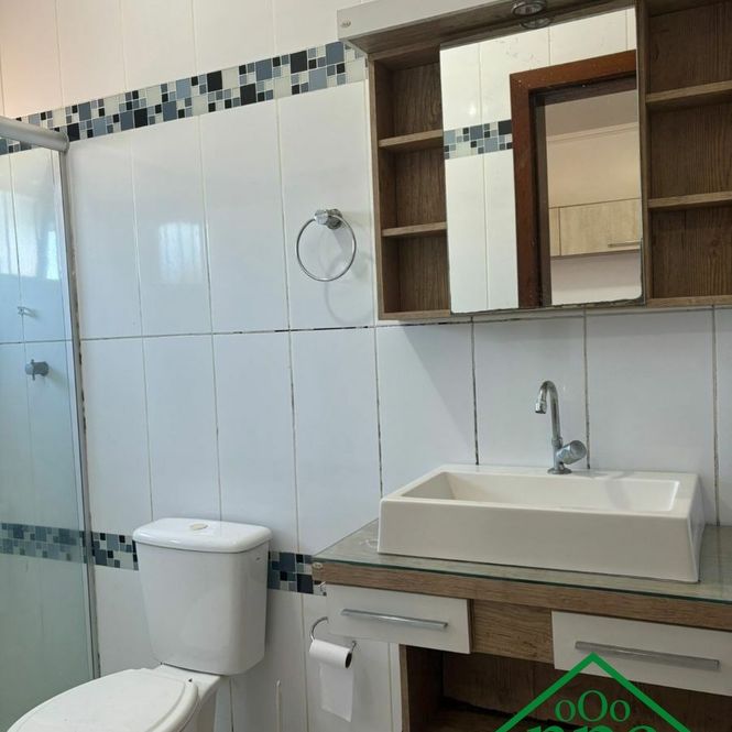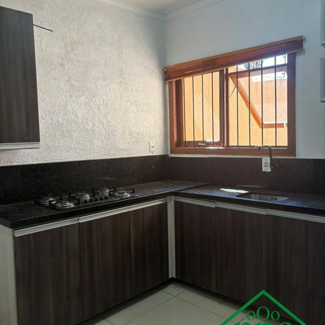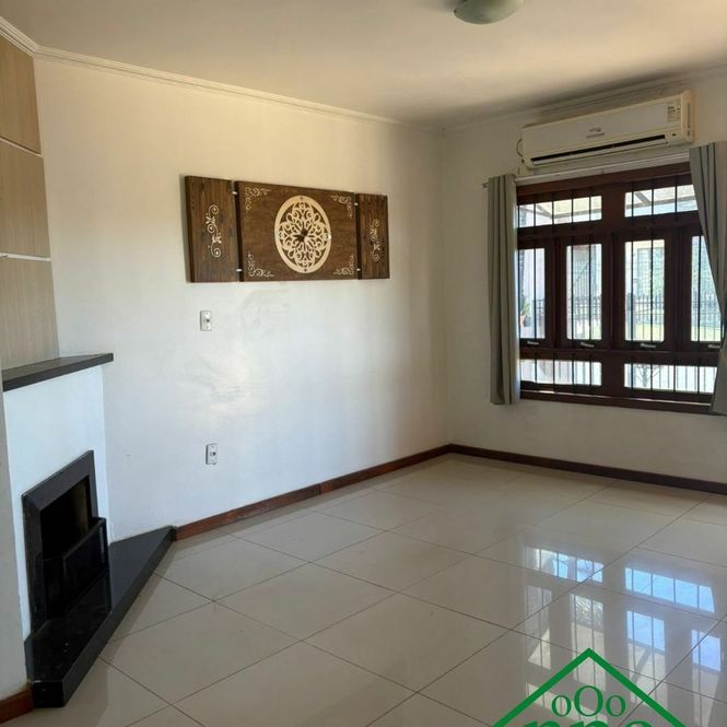Bela casa para alugar, com uma ampla sala com lareira, cozinha planejada, uma suíte planejada, banheiro e jardim.